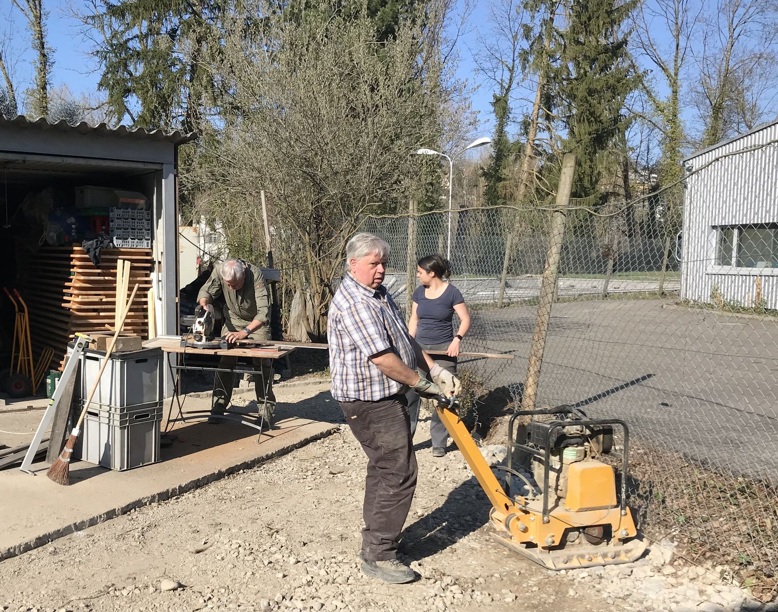 An mehreren Baustellen wurde am letzten Februar Bautag gleichzeitig gearbeitet. Fassade & Stützmauer der Garage erstellt, alter Belag entfernt, Werkstatt